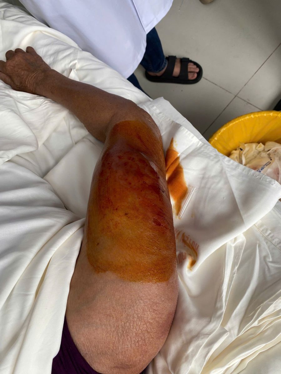 Bệnh nhân nhập viện với tình trạng sưng nóng, đỏ đau vùng tiêm, có dấu hiệu hoại tử. Qua thăm khám và đánh giá lâm sàng, các bác sĩ xác định đây là biến chứng do tiêm truyền không đảm bảo nguyên tắc vô khuẩn.