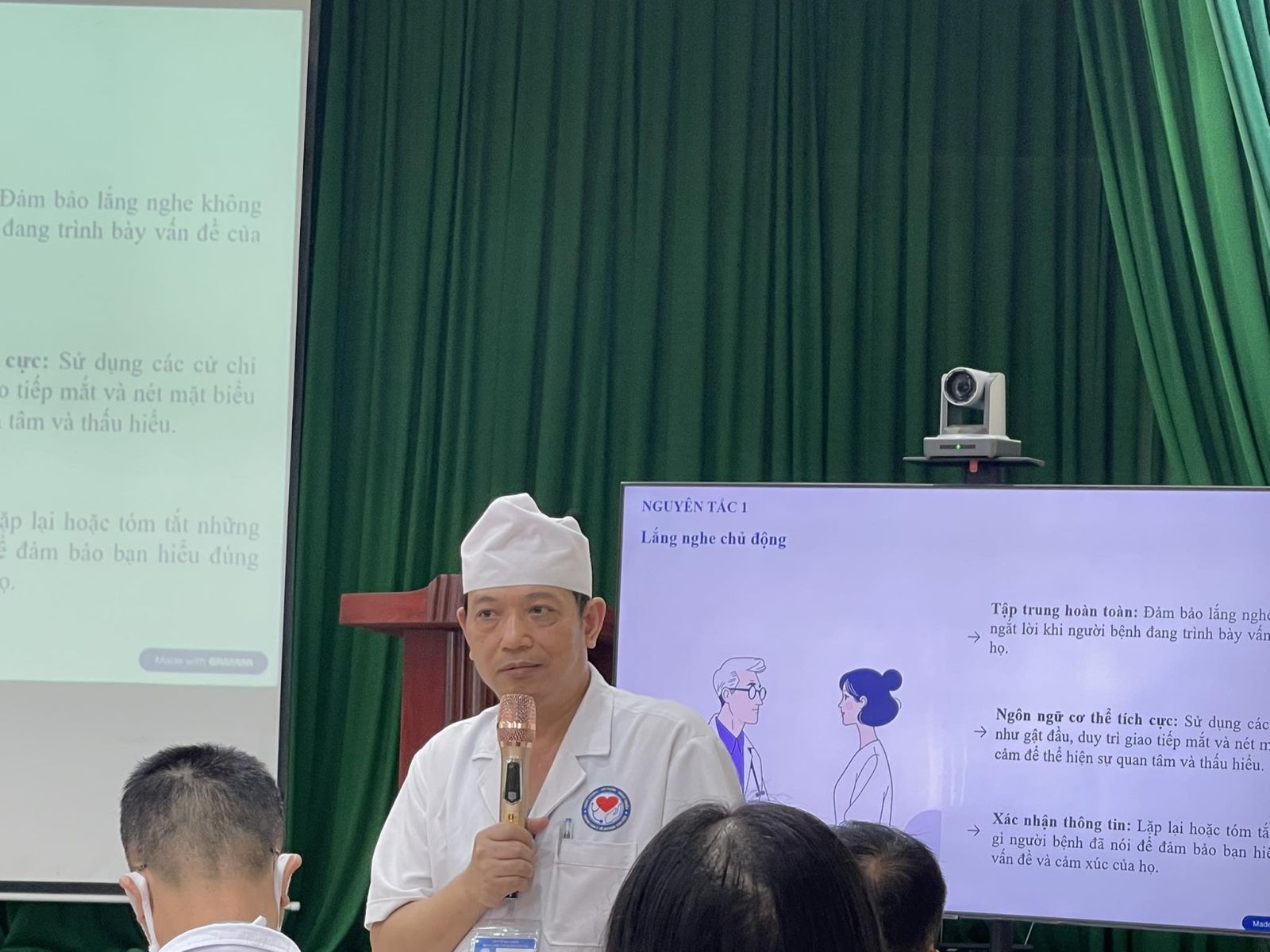 Chương trình do Thầy thuốc ưu tú, Bác sĩ chuyên khoa I Nguyễn Văn Hoàn – Giám đốc Trung tâm Y tế Tân Yên làm báo cáo viên. Nội dung tập huấn tập trung vào các phần chính:Tầm quan trọng của giao tiếp và các quy định liên quan; Xây dựng hình ảnh nhân viên y tế giao tiếp chuẩn mực. Phân tích tình huống giao tiếp với người bệnh và người nhà. Phân tích tình huống giao tiếp với đồng nghiệp và cấp trên. Cam kết hành động.