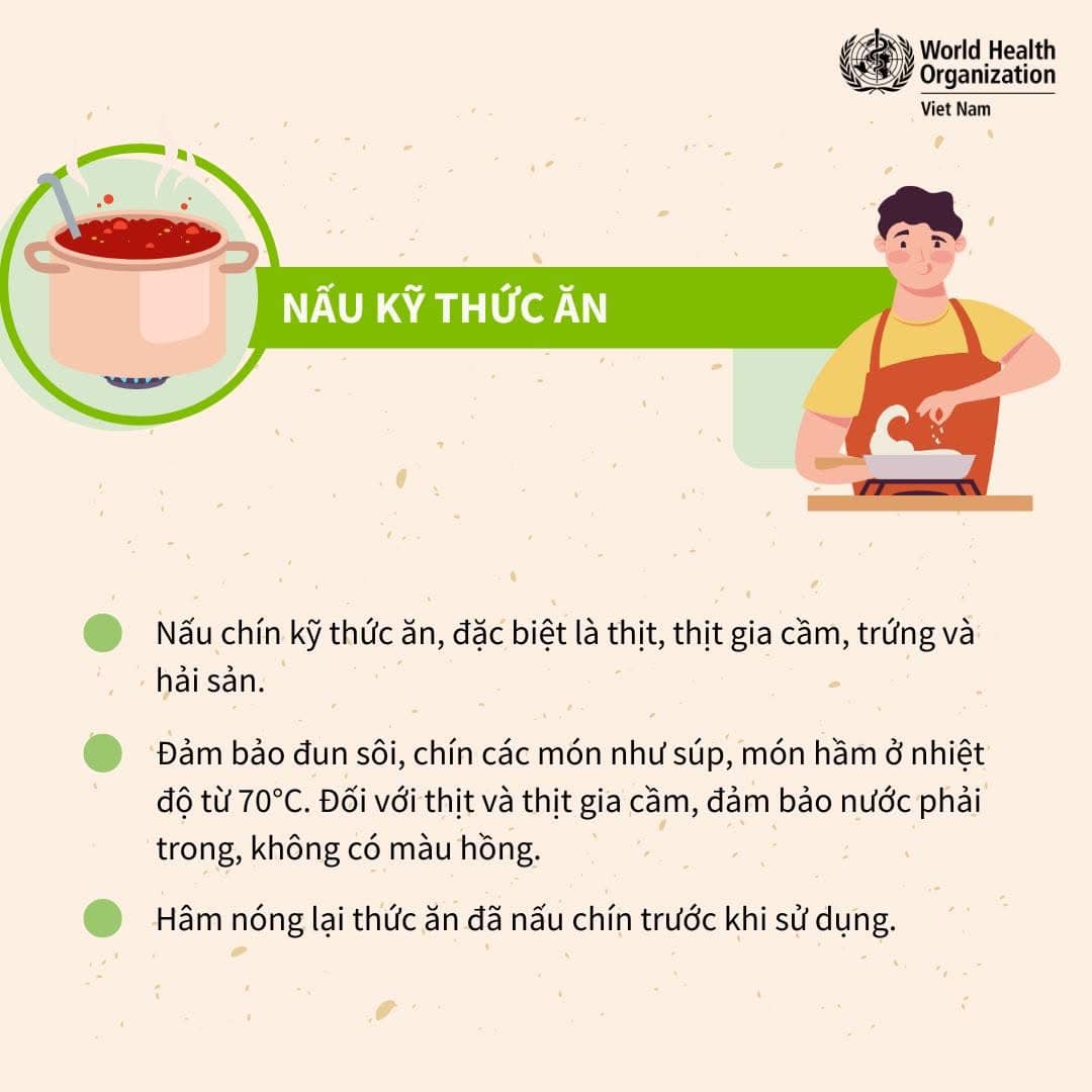Nấu chín kỹ thức ăn (đặc biệt là các loại thịt, gia cầm, trứng, và hải sản).