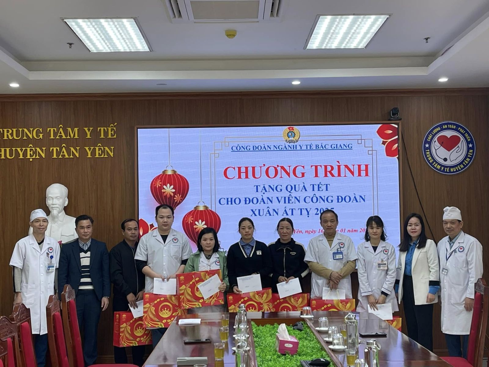 Về phía Trung tâm Y tế huyện Tân Yên có đồng chí Nguyễn Văn Hoàn – Bí thư Đảng uỷ, Giám đốc Trung tâm, Đồng chí Hoàng Văn Tuấn – Phó Giám đốc, Chủ tịch công đoàn, các đồng chí Uỷ viên BCH Công đoàn và 20 đoàn viên được nhận quà của chương trình.