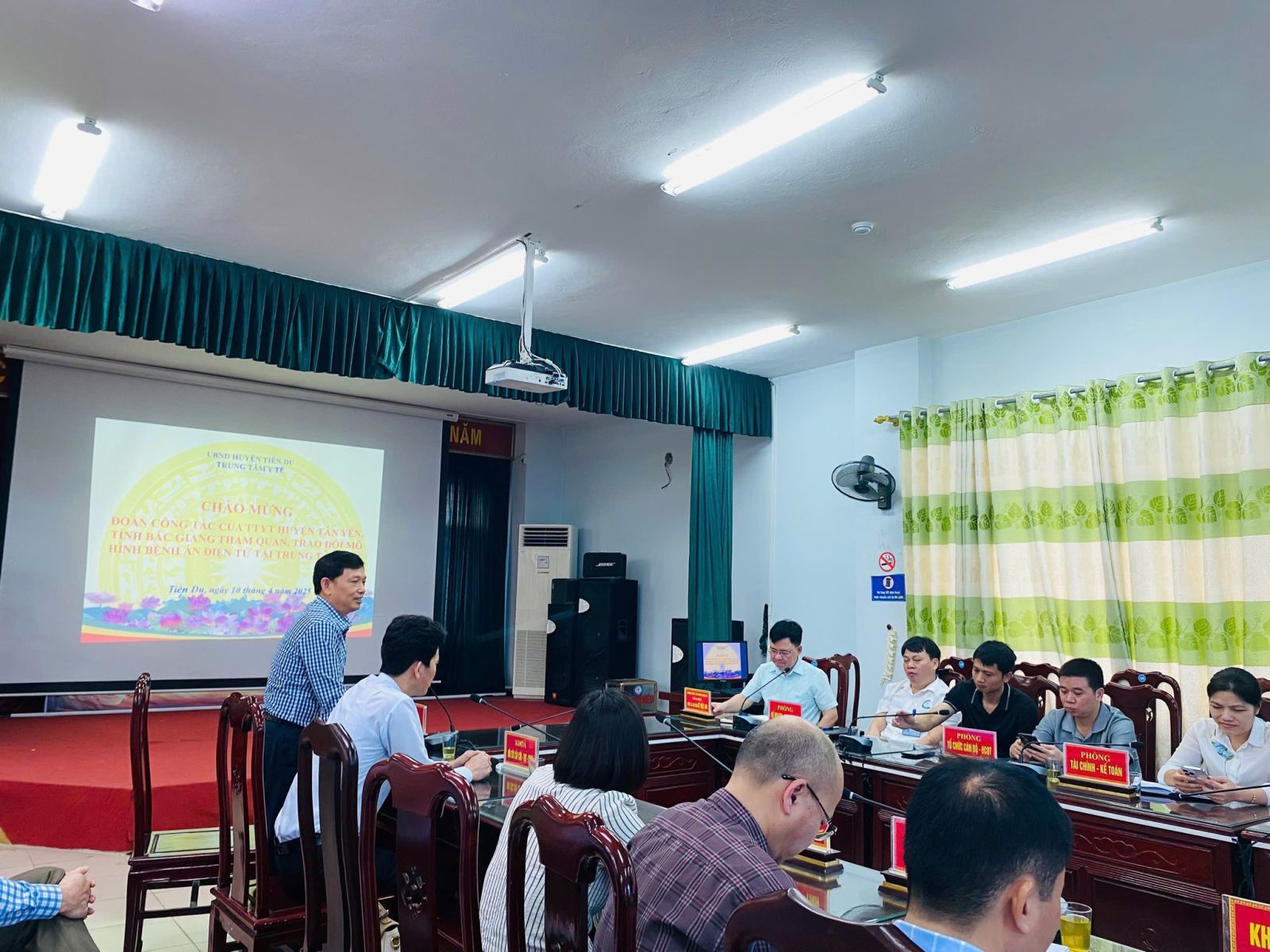 Ngày 10/4/2025, Đoàn công tác của Trung tâm Y tế huyện Tân Yên do Thầy thuốc ưu tú, Bác sĩ chuyên khoa I Nguyễn Văn Hoàn – Giám đốc Trung tâm làm trưởng đoàn cùng các Bác sĩ chuyên khoa II Nguyễn Đức Huân – PGĐ và lãnh đạo phòng Kế hoạch nghiệp vụ, Tổ chức hành chính, Tài chính kế toán; Điều dưỡng – QLCL, cán bộ phụ trách công nghệ thông tin; Trưởng khoa, Điều dưỡng trưởng khoa Chẩn đoán hình ảnh - Thăm dò chức năng, Xét nghiệm, YHCT&PHCN, Ngoại, Sản, Cấp cứu, Nội, Nhi, Khám bệnh..đã đến thăm và học tập mô hình bệnh án điện tử tại TTYT huyện Tiên Du tỉnh Bắc Ninh.