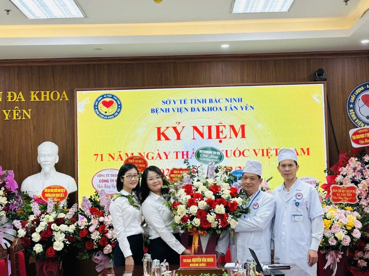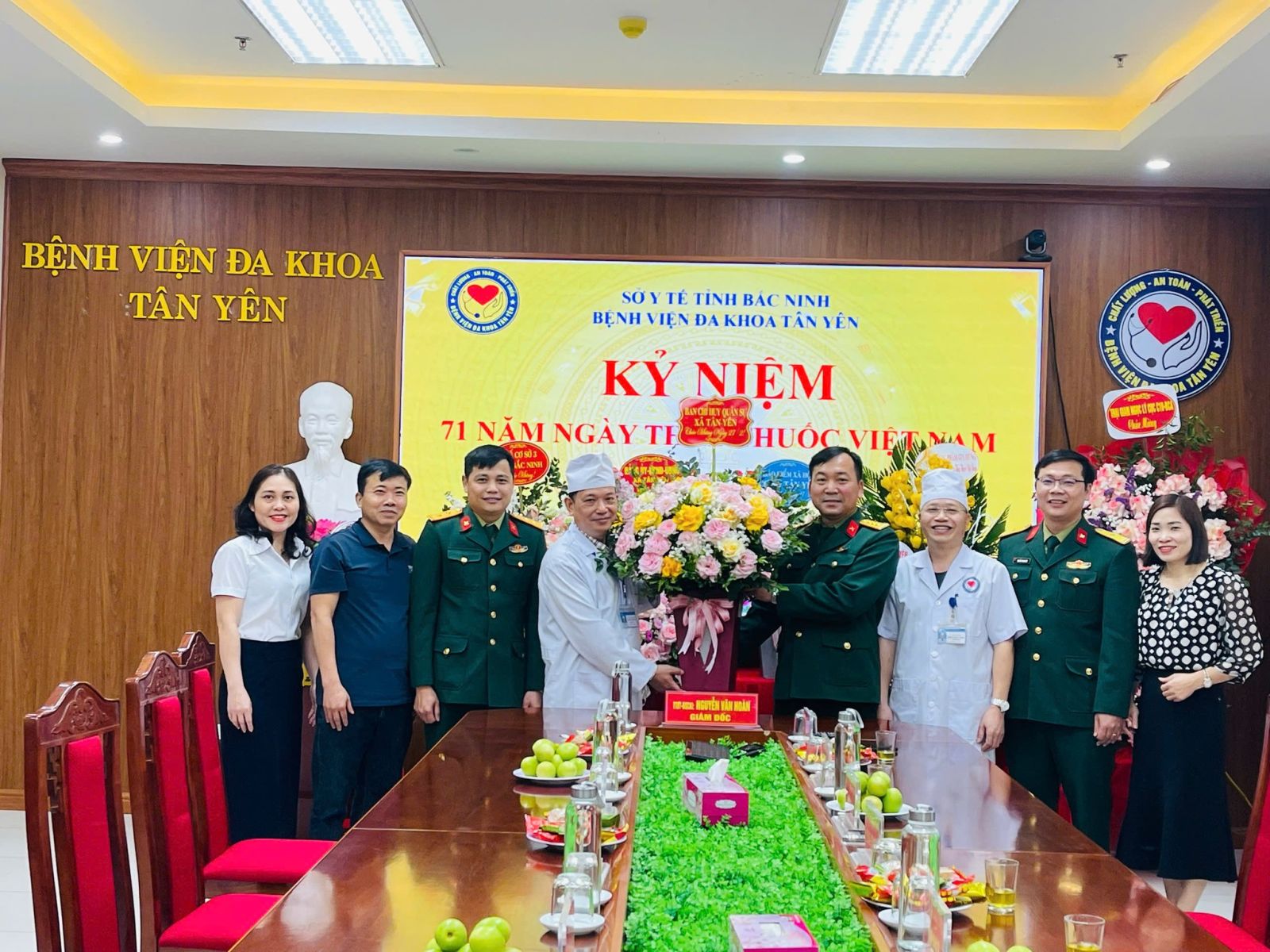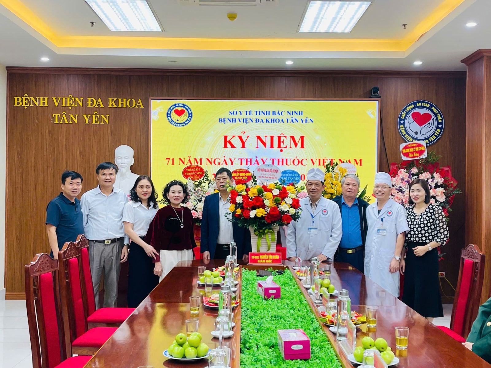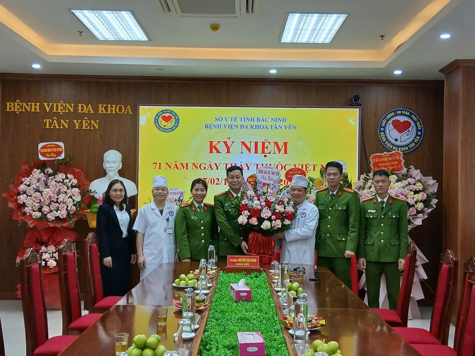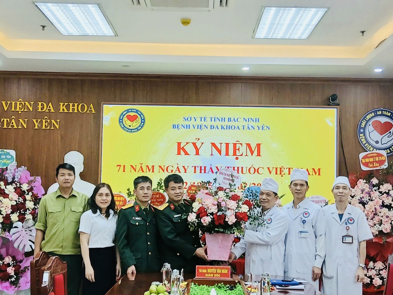 Nhân dịp kỷ niệm 71 năm Ngày Thầy thuốc Việt Nam, Bệnh viện Đa khoa Tân Yên rất vinh dự và được các đồng chí lãnh đạo Đảng ủy, HĐND, UBND, UBMTTQ xã Tân Yên, các cơ quan đơn vị, doanh nghiệp, trường học, lực lượng vũ trang, các Hội nghề nghiệp, Hội nguyên lãnh đạo tỉnh, huyện nghỉ hưu trên địa bàn xã Tân Yên đến thăm và tặng hoa chúc mừng các thầy thuốc, nhân viên y tế và người lao động bệnh viện.
