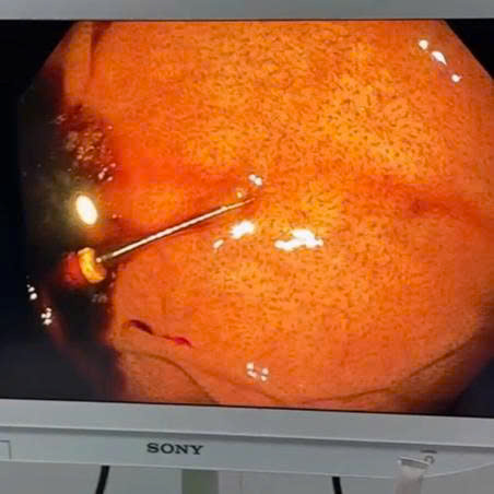 Sau khi thăm khám lâm sàng, khai thác bệnh sử và thực hiện các cận lâm sàng cần thiết, các bác sĩ xác định dị vật nằm trong dạ dày, tiềm ẩn nguy cơ gây tổn thương niêm mạc và biến chứng nếu không được xử trí kịp thời. Bệnh nhân được chỉ định nội soi can thiệp cấp cứu nhằm loại bỏ dị vật sớm, hạn chế tối đa nguy cơ tổn thương đường tiêu hóa