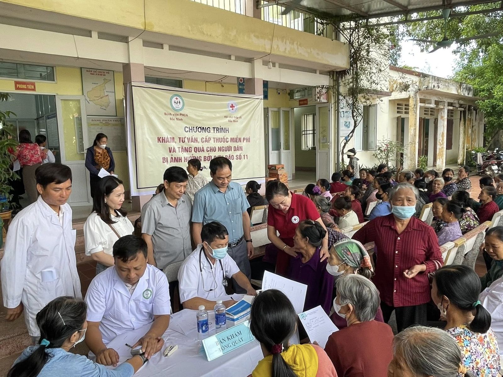 Tiếp tục hành trình phối hợp với Bệnh viện phục hồi chức năng và Hội chữ thập đỏ tỉnh Bắc Ninh khám, cấp thuốc miễn phí và tặng quà cho nhân dân vùng bị ảnh hưởng do cơn bão số 11. ( Hoạt động ngày 21/10 tại Trạm y tế Hợp Đức xã Phúc Hoà)
