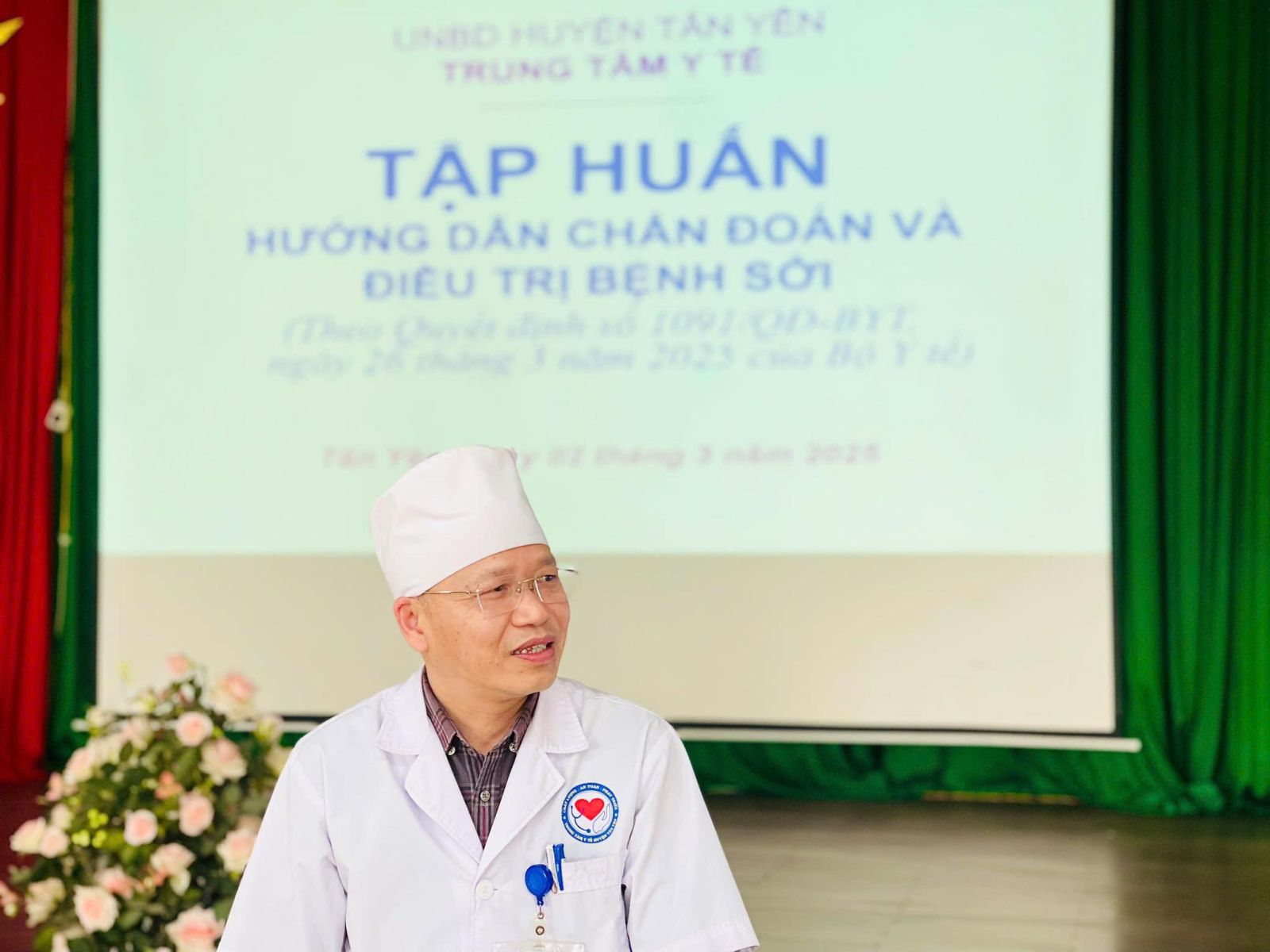 Tại hội nghị tập huấn BsCKI Cao Văn Ninh - Trưởng phòng Kế hoạch Nghiệp vụ truyền đạt nội dung về Hướng dẫn chẩn đoán và điều trị bệnh sởi theo Quyết định số 1019/QĐ BYT ngày 26/3/2025 của Bộ Y tế; Hướng dẫn giám sát và phòng, chống bệnh sởi, rubella theo Quyết định số 4845/QĐ-BYT ngày 05/12/2012 của Bộ Y tế.